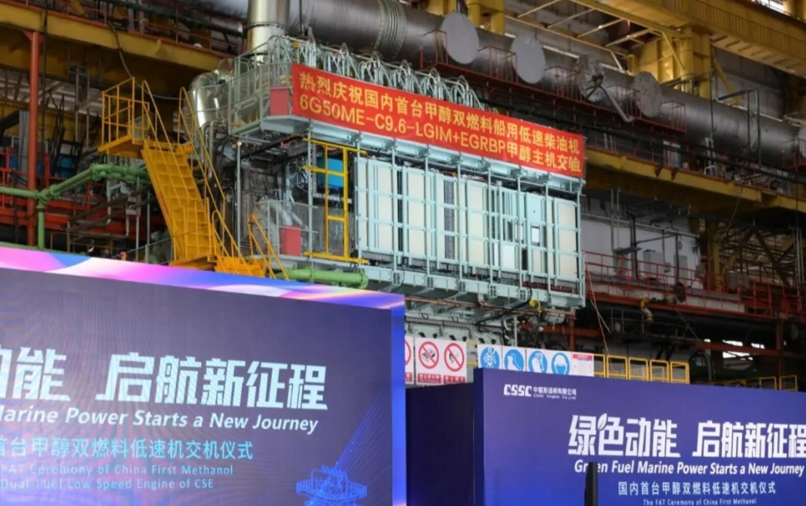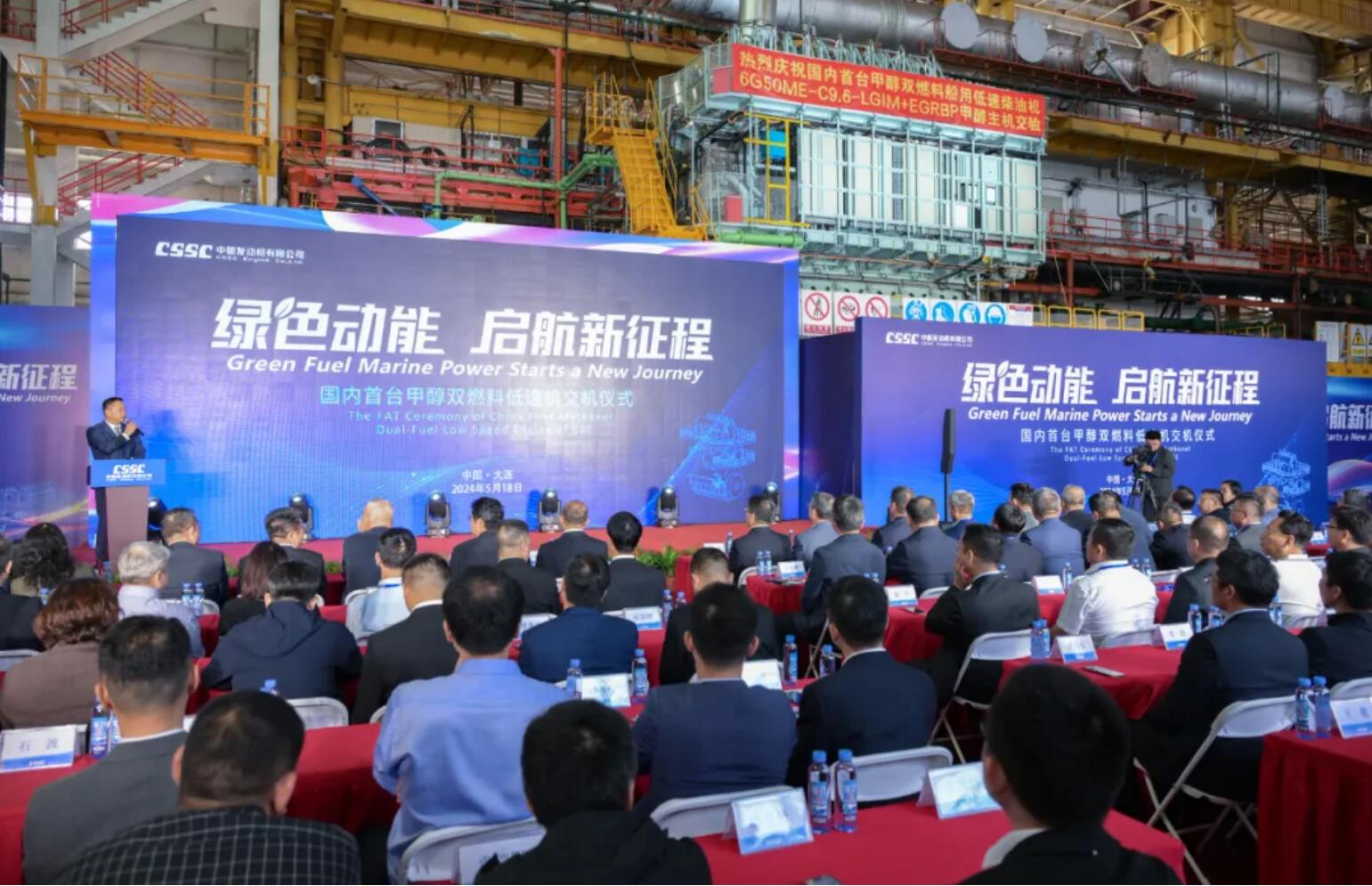 孟夏之日,萬(wàn)物并秀。5月18日,備受矚目的國(guó)內(nèi)首臺(tái)甲醇雙燃料低速機(jī)—6G50ME-C9.6-LGIM+EGRBP交機(jī)儀式在中國(guó)船舶集團(tuán)中船發(fā)動(dòng)機(jī)(CSE)成功舉行。中國(guó)船舶集團(tuán)有關(guān)部門(mén)領(lǐng)導(dǎo),政府機(jī)關(guān)領(lǐng)導(dǎo),船東、船廠、船級(jí)社及專(zhuān)利方有關(guān)領(lǐng)導(dǎo)和代表等出席了交機(jī)儀式,共同見(jiàn)證中國(guó)甲醇雙燃料低速機(jī)制造實(shí)現(xiàn)從“無(wú)”到“有”這一里程碑時(shí)刻。