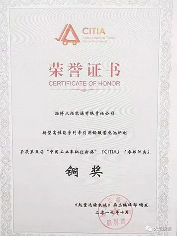 10月18日,中國工程機(jī)械工業(yè)協(xié)會(huì)工業(yè)車輛分會(huì)七屆三次會(huì)員代表大會(huì)暨2019年年會(huì)在河北唐山勝利召開。會(huì)議對前期評(píng)審的第五屆“中國工業(yè)車輛創(chuàng)新獎(jiǎng)”(CITIA)(零部件、管理和服務(wù)類)獲獎(jiǎng)企業(yè)進(jìn)行了表彰,風(fēng)帆火炬公司作為十一家獲獎(jiǎng)企業(yè)之一,參評(píng)的“新型高性能系列牽引用鉛酸蓄電池研制”項(xiàng)目榮獲銅獎(jiǎng),成為蓄電池類項(xiàng)目唯一獲獎(jiǎng)廠家。