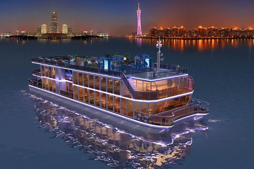 160客位“闊闊真公主號”游船總長36m,型寬8m,型深3m。該船是仿七百多年前元朝忽必烈女兒闊闊真公主遠(yuǎn)嫁波斯時乘坐的古船建造而成,有“福船送福”的寓意。建造后舉辦古港帆影燈光秀行走珠江,夜游展示亞洲文化交流的傳奇,是不可多得的文化遺產(chǎn)。