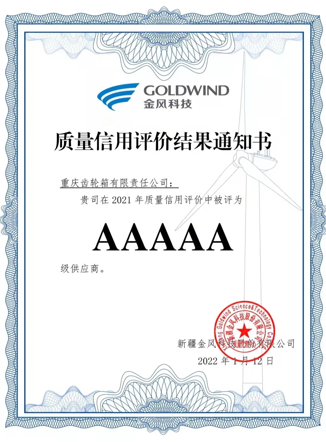 近日,中國船舶集團旗下中國動力子公司重齒公司憑借著優(yōu)質(zhì)的產(chǎn)品和出色的服務(wù),在金風(fēng)科技2021年質(zhì)量信用評價中再一次被評為AAAAA級供應(yīng)商,這是重齒公司連續(xù)三年被評為5A級供應(yīng)商!