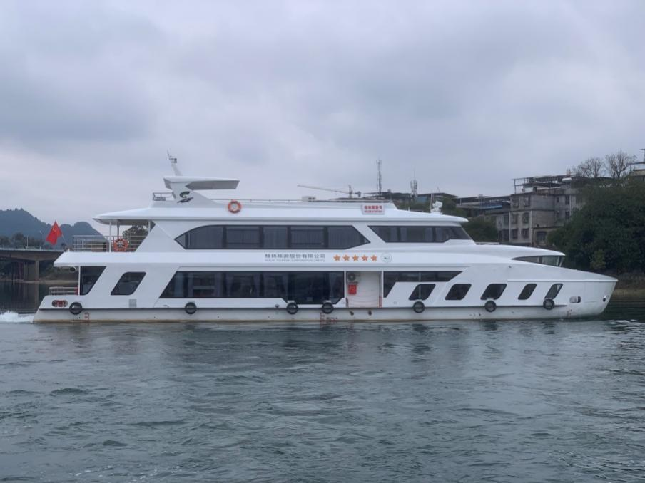 “桂林旅游號”為漓江首艘最高星級5星旅游客船,主要航行于桂林至陽朔段漓江水域。七一一所為其提供了整套直流組網(wǎng)配電及推進設(shè)備,以一流的直流組網(wǎng)技術(shù)為甲天下的桂林山水提供柴油機/蓄電池混合動力控制系統(tǒng)和直流母線變頻控制系統(tǒng),對保護生態(tài)環(huán)境、實現(xiàn)綠色發(fā)展具有重要意義。