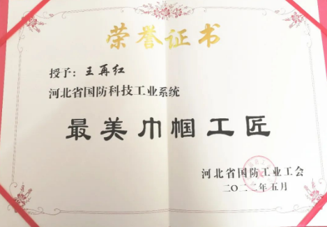 王再紅,中共黨員,正高級工程師,擔(dān)任風(fēng)帆研究院基礎(chǔ)科研室主任。2022年榮獲河北省國防科技工業(yè)系統(tǒng)“最美巾幗工匠”榮譽(yù)稱號。工作中她充分發(fā)揮專業(yè)特長,堅守科研一線,用實(shí)際行動詮釋著創(chuàng)新與奉獻(xiàn),彰顯著巾幗工匠風(fēng)范。