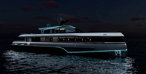 該船總長35.6米,型寬8米,推進功率2×750kW,載客90人,航區(qū)為沿海航區(qū)。該船隸屬于臺州市椒江區(qū)大陳島碳中和示范島建設工程,是大陳島首艘島際交通新能源客船,對促進大陳島這顆“東海明珠”綠色低碳高質(zhì)量發(fā)展具有重要意義。本船建成后將用于大陳島環(huán)島游與跳島游,新穎的造型和極簡的涂裝,結(jié)合科技的燈光使其具有極強的時尚感,將為游客帶來全新舒適的乘坐觀光體驗。