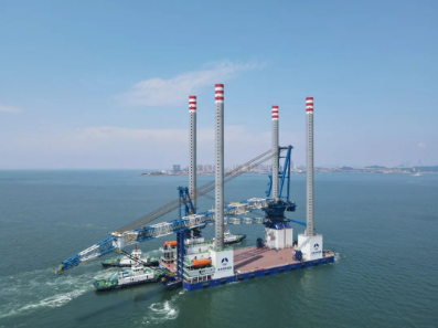 該平臺作為新一代自升式風電安裝平臺,融合國內外自升式平臺、起重平臺、風機安裝平臺的先進技術于一體,在運載吊裝能力、作業(yè)效率、總體集成度、機動性、作業(yè)穩(wěn)定性及生存能力等方面處于行業(yè)領先水平,平臺型長106.6米、型寬44.2米、型深8.45米,樁腿長度110米,配備一臺1200噸繞樁吊機、一臺300噸繞樁吊機和四套連續(xù)式液壓插銷升降系統(tǒng),最大作業(yè)水深60米,平臺入級中國船級社,適用于無限航區(qū)航行和作業(yè)要求。該平臺作業(yè)甲板貫通式設計,能夠滿足國內最大海上風機存放,可存放2套8.3兆瓦或1套16兆瓦風機,同時滿足90人居住,是目前國內樁腿最長、作業(yè)水深最大、主吊機吊高最高、功能最全、效率最高的圓柱形樁腿風電安裝平臺。