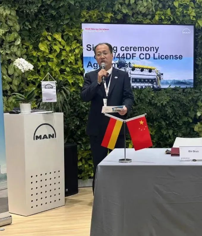 12月6日,中國(guó)船舶集團(tuán)旗下中國(guó)動(dòng)力子公司陜柴重工、中國(guó)船舶工業(yè)貿(mào)易有限公司、MAN公司在2023年中國(guó)國(guó)際海事會(huì)展上舉行了MAN 35/44DF CD發(fā)電機(jī)組專(zhuān)利許可協(xié)議簽訂儀式,標(biāo)志著陜柴重工成為國(guó)內(nèi)首家獲得該機(jī)型許可證的生產(chǎn)廠商。陜柴重工總經(jīng)理、黨委副書(shū)記孫志宏、副總經(jīng)理雷軍、謝占成與中船貿(mào)易總經(jīng)理胡凱、MAN亞太區(qū)負(fù)責(zé)人薩拉斯等領(lǐng)導(dǎo)共同見(jiàn)證了簽訂儀式。
