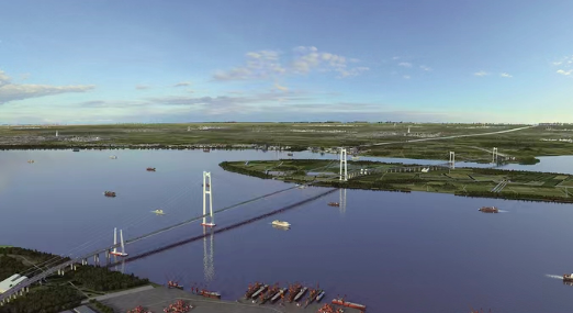 江蘇張靖皋長江大橋南航道橋主跨2300米,北航道橋主跨1208米,將創(chuàng)造世界最大跨徑懸索橋、最高懸索橋索塔等六項“世界之最”以及首創(chuàng)超大型自行走裝配式索鞍等六個“世界首創(chuàng)”。張靖皋長江大橋位于江陰長江大橋下游約28公里,滬蘇通長江大橋上游約16公里,連接蘇州、泰州和南通三市,是“十四五”期間國家重點推進的過江通道項目。大橋建成通車后,將對落實長三角區(qū)域一體化發(fā)展和長江經濟帶發(fā)展國家戰(zhàn)略,優(yōu)化長江干線過江通道布局,完善區(qū)域路網布局,促進跨江融合發(fā)展等帶來直接影響。