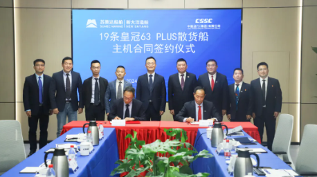 2024年5月15日,蘇美達(dá)股份下屬蘇美達(dá)船舶有限公司旗下新大洋造船有限公司與中國(guó)船舶集團(tuán)下屬中船動(dòng)力(集團(tuán))有限公司旗下滬東重機(jī)有限公司在滬簽訂了19條皇冠63 PLUS散貨船主機(jī)合同。蘇美達(dá)船舶黨委書(shū)記、董事長(zhǎng)何雋,黨委副書(shū)記、總經(jīng)理徐斌,財(cái)務(wù)負(fù)責(zé)人朱長(zhǎng)城,中船動(dòng)力集團(tuán)黨委書(shū)記、董事長(zhǎng)李琤,黨委副書(shū)記、總經(jīng)理邵煜出席簽約儀式,新大洋造船副總經(jīng)理金文剛與中船動(dòng)力集團(tuán)副總經(jīng)理張仲領(lǐng)分別代表雙方簽字。新大洋造船、中船動(dòng)力集團(tuán)市場(chǎng)營(yíng)銷中心以及滬東重機(jī)相關(guān)負(fù)責(zé)人一同參與見(jiàn)證。