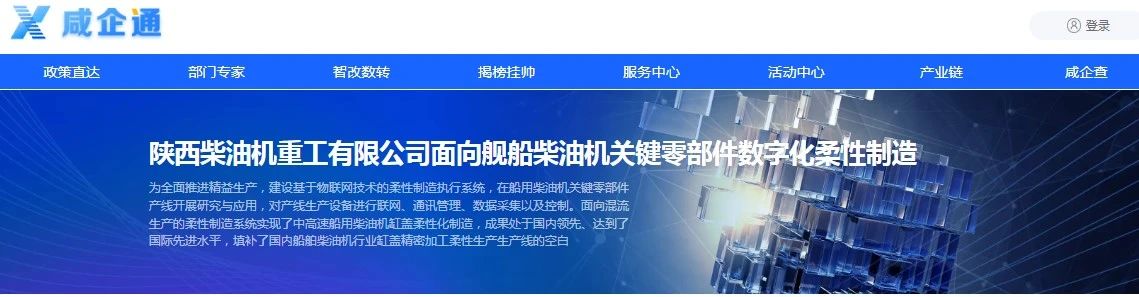 近日,中國船舶陜柴重工申報的數(shù)字化典型應(yīng)用場景《基于三維環(huán)境的數(shù)字化工藝設(shè)計系統(tǒng)》成功入選陜西省2024年數(shù)字化典型應(yīng)用場景名單;《面向JC柴油機關(guān)鍵零部件數(shù)字化柔性制造》在咸陽市委、市政府設(shè)立的綜合性服務(wù)平臺“咸企通”網(wǎng)站首頁作為典型案例進行展示推廣。