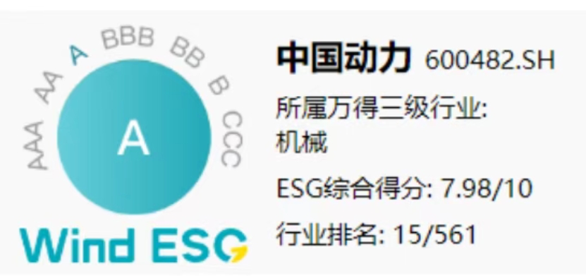 近日,知名權(quán)威ESG評(píng)級(jí)機(jī)構(gòu)萬(wàn)得(Wind)更新了中船集團(tuán)旗下中國(guó)動(dòng)力最新一期的ESG評(píng)級(jí)結(jié)果,中國(guó)動(dòng)力憑借在ESG領(lǐng)域的實(shí)踐和成效,榮獲“A”級(jí)評(píng)級(jí),綜合得分在機(jī)械行業(yè)561家上市公司中位居第15位。