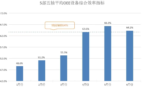 經(jīng)過改善課題小組6個月的專項攻關(guān),五軸加工中心OEE提升實現(xiàn)三級跨越。核心指標(biāo)突破,OEE由48%提升至64%,年度釋放產(chǎn)能價值約320萬;過程浪費銳減,非增值時間占比從52%降至36%;組織動能迸發(fā),員工提交改善提案20項,采納19項,員工改善熱情提升;工作機制初步建立,未來可在其他加工生產(chǎn)設(shè)備上推廣應(yīng)用,推動加工效率的長效躍升。
