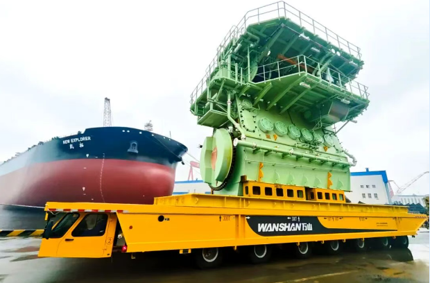 10月11日,搭載6G60MEC #56 主機(jī)的600噸平板車(chē)緩緩駛出中船集團(tuán)旗下中國(guó)動(dòng)力子公司中船發(fā)動(dòng)機(jī)大柴公司總裝制造部大門(mén),標(biāo)志著大柴公司首次實(shí)現(xiàn)該型主機(jī)的整機(jī)發(fā)運(yùn),實(shí)現(xiàn)了公司在大型主機(jī)產(chǎn)品發(fā)運(yùn)能力上的新突破。
