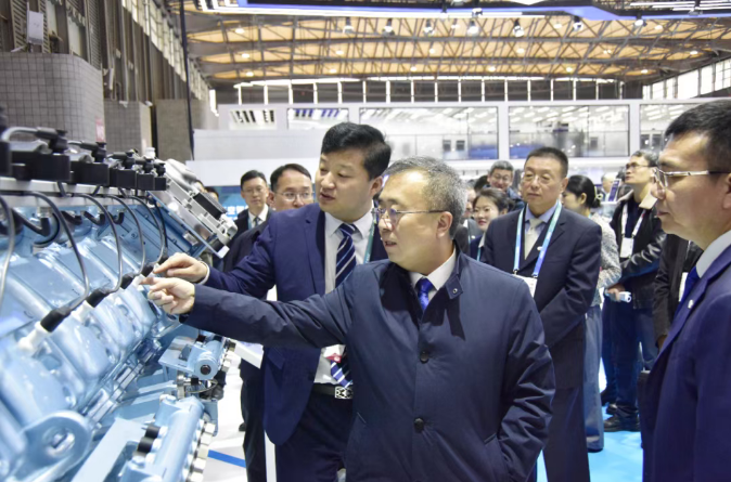 12月2日,2025年中國國際海事會展在上海新國際博覽中心盛大啟幕。中船集團(tuán)黨組副書記、總經(jīng)理王國強(qiáng),黨組成員、副總經(jīng)理彭原璞、胡賢甫蒞臨中船河柴展臺。中國動力子公司中船河柴黨委副書記、總經(jīng)理王正祥詳細(xì)介紹了自主研制的CHG620V12MMPI單一甲醇燃料發(fā)動機(jī)的性能。王國強(qiáng)對中船河柴深耕綠色動力領(lǐng)域的創(chuàng)新成果給予高度肯定。