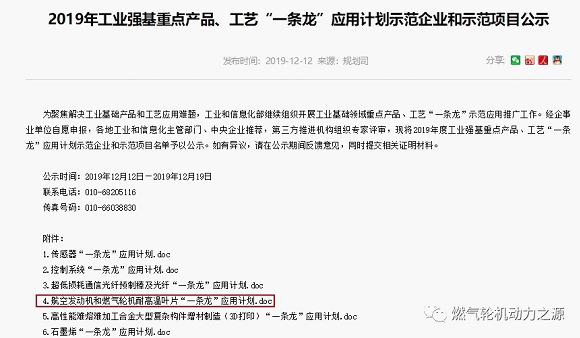 工信部近日發(fā)布2019年工業(yè)強(qiáng)基重點(diǎn)產(chǎn)品、工藝“一條龍”應(yīng)用計(jì)劃示范企業(yè)和示范項(xiàng)目公示,其中包括航空發(fā)動機(jī)和燃?xì)廨啓C(jī)耐高溫葉片“一條龍”應(yīng)用計(jì)劃,詳情如下: