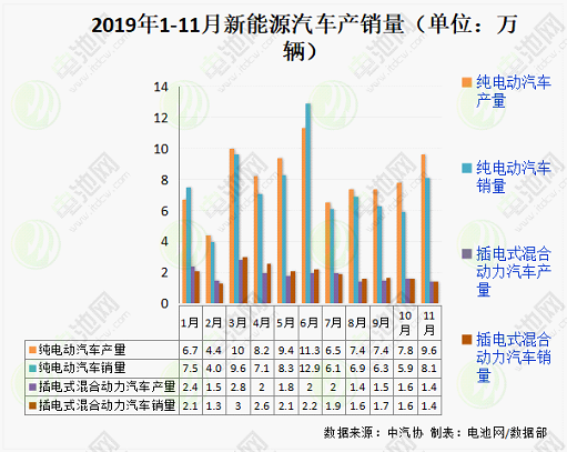 補(bǔ)貼過渡期以后,2019年新能源汽車產(chǎn)銷自7月以來,連續(xù)5個(gè)月同比下跌。中汽協(xié)數(shù)據(jù)顯示,今年7-9月,新能源汽車銷量分別為8萬輛、8.5萬輛和8萬輛,同比分別下降4.7%、15.8%和34.2%;到了10月和11月,銷量分別為7.5萬輛和7.2萬輛,同比下降幅度更是擴(kuò)大至45%以上。新能源汽車產(chǎn)銷的大幅下降,對鈷市行情利空,鈷后市需求預(yù)期下降,鈷行情利空。