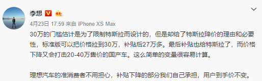 圖片來源:李想微博截圖