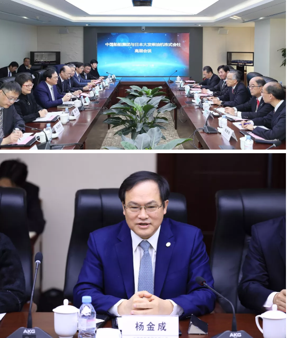 ????楊金成對原田猛、木下茂樹一行的到訪表示歡迎,并介紹了中國船舶集團(tuán)業(yè)務(wù)發(fā)展情況。楊金成表示,中國船舶集團(tuán)和大發(fā)柴油機(jī)是關(guān)系十分緊密的合作伙伴,雙方擁有共同的發(fā)展目標(biāo)。大發(fā)柴油機(jī)多年來為中國船舶集團(tuán)旗下的安柴公司和陜柴重工在發(fā)展中速機(jī)方面提供了大力支持,推動兩家公司取得了良好的業(yè)績。站在新的歷史起點(diǎn),中國船舶集團(tuán)愿與大發(fā)柴油機(jī)在合作共贏的原則基礎(chǔ)上,進(jìn)一步加強(qiáng)交流溝通,充分發(fā)揮各自優(yōu)勢,在技術(shù)研發(fā)、市場開拓、人才培養(yǎng)等方面深化合作,不斷提升產(chǎn)品質(zhì)量、生產(chǎn)效率和售后服務(wù)水平,推動雙方的合作取得更多更大的成果。