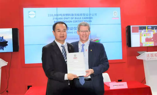 12月4日,法國(guó)船級(jí)社為中國(guó)船舶集團(tuán)七〇八所簽發(fā)21萬(wàn)噸雙燃料散貨船初步認(rèn)可證書。
