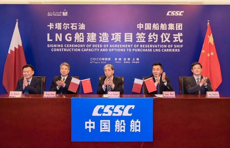 ????4月22日,中國船舶集團(tuán)與卡塔爾石油公司在中國北京、上海及卡塔爾多哈三地以“云簽約”方式聯(lián)合簽署“中國船舶—卡塔爾石油液化天然氣(LNG)船建造項(xiàng)目”協(xié)議,所涉訂單總金額超過200億元人民幣。這是卡塔爾天然氣項(xiàng)目首批訂單,也是中國船企迄今承接的金額最大的造船出口訂單。中國船舶集團(tuán)和卡塔爾石油將強(qiáng)強(qiáng)聯(lián)手,依托各自優(yōu)勢(shì)在能源運(yùn)輸、裝備制造及全球化服務(wù)等領(lǐng)域開展廣泛合作。