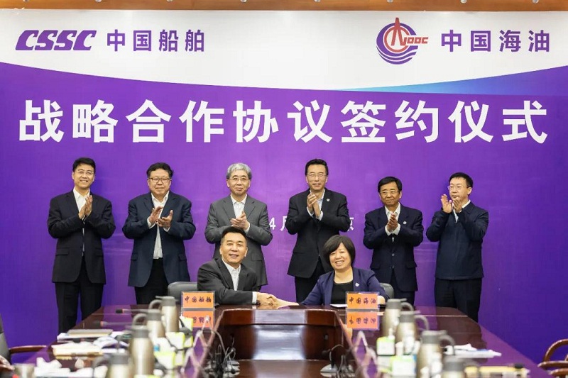 ????根據(jù)協(xié)議,中國船舶集團(tuán)和中國海油將建立戰(zhàn)略合作伙伴關(guān)系,充分發(fā)揮在各自領(lǐng)域的優(yōu)勢,在海洋油氣勘探開發(fā)業(yè)務(wù)及相關(guān)裝備、油氣運(yùn)輸業(yè)務(wù)及相關(guān)裝備、綠色清潔能源拓展、裝備科研開發(fā)等領(lǐng)域開展全方位合作。
