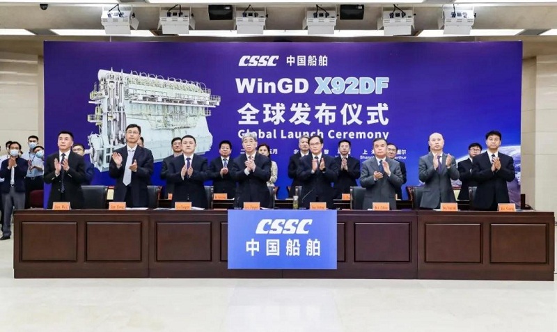????5月26日,由中國船舶旗下溫特圖爾發(fā)動(dòng)機(jī)有限公司(WinGD)自主研發(fā),上海中船三井造船柴油機(jī)有限公司建造,中船海洋動(dòng)力技術(shù)服務(wù)有限公司保障的目前世界最大船用雙燃料低速機(jī)WinGD X92DF正式向全球發(fā)布。中國船舶集團(tuán)董事長雷凡培出席發(fā)布儀式并講話,總經(jīng)理?xiàng)罱鸪芍鞒謨x式。國家相關(guān)部委、地方政府、船級(jí)社、航運(yùn)公司、造船公司等有關(guān)領(lǐng)導(dǎo)和專家,中國船舶集團(tuán)副總經(jīng)理馮永強(qiáng)、孫偉、杜剛出席發(fā)布儀式。
