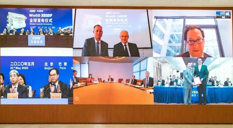 ????發(fā)布儀式采用視頻形式,在中國北京、上海,法國巴黎、馬賽和瑞士溫特圖爾全球五地遠(yuǎn)程連線同步舉行。在各方嘉賓見證下,WinGD X92DF通過BV(法國船級(jí)社)型式認(rèn)可,雷凡培宣布向全球發(fā)布。