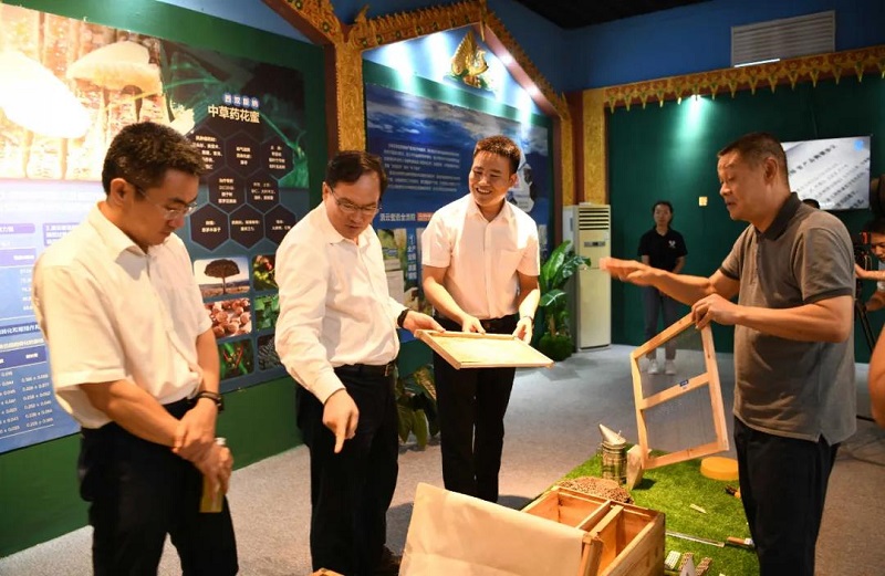楊金成一行參觀了滇云蜜語公司生產(chǎn)線、品控中心等地,了解了產(chǎn)業(yè)扶貧基金使用和蜂蜜事業(yè)帶動脫貧情況,對滇云蜜語公司帶動村集體經(jīng)濟(jì)發(fā)展、促進(jìn)檔卡戶脫貧增收等模式給予充分肯定;在磨憨鎮(zhèn)尚勇村南坡村小組檢查了援建的茶葉初制所項目,并慰問有關(guān)建檔立卡戶,鼓勵他們增收致富;在中國船舶磨憨尚岡希望小學(xué)調(diào)研了教學(xué)樓、標(biāo)準(zhǔn)塑膠運動場等幫扶項目及教學(xué)質(zhì)量提升情況,勉勵孩子們努力學(xué)習(xí)、堅定志向,將來回報家鄉(xiāng)和社會;對物資公司所屬勐臘公司開展貿(mào)易業(yè)務(wù)和消費扶貧情況以及昆船公司智慧停車場等項目情況進(jìn)行了調(diào)研。