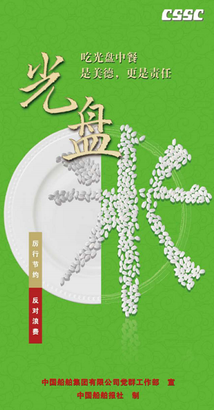 勤儉節(jié)約是中華民族的傳統(tǒng)美德,也是中國共產(chǎn)黨的優(yōu)良作風(fēng)。為深入貫徹落實習(xí)近平總書記重要指示精神,中國船舶集團(tuán)黨組對制止餐飲浪費作出全面部署,要求集團(tuán)公司廣大黨員干部在厲行節(jié)約、反對浪費方面走在前列、作出表率,大力弘揚勤儉節(jié)約的光榮傳統(tǒng)。