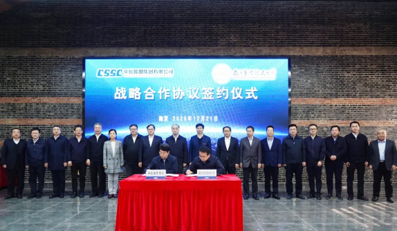 12月21日,中國船舶集團(tuán)有限公司在南京分別與南京航空航天大學(xué)、江蘇科技大學(xué)簽署戰(zhàn)略合作協(xié)議。中國船舶集團(tuán)黨組書記、董事長雷凡培,黨組副書記、總經(jīng)理?xiàng)罱鸪桑h組成員、副總經(jīng)理錢建平、杜剛,南航黨委書記鄭永安,黨委副書記、校長單忠德,江科大黨委書記葛世倫,黨委副書記、校長周南平等領(lǐng)導(dǎo)出席簽約儀式。