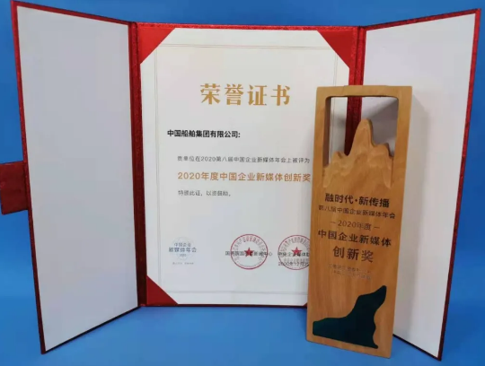 12月22日,由國務院國資委新聞中心、中央企業(yè)媒體聯盟聯合主辦的2020第八屆中國企業(yè)新媒體年會在北京舉行。本屆年會主題聚焦“融時代 · 新傳播”,中國船舶集團有限公司因在“奮斗者”號融媒體報道中的創(chuàng)新表現,榮獲“2020年度中國企業(yè)新媒體創(chuàng)新獎”。