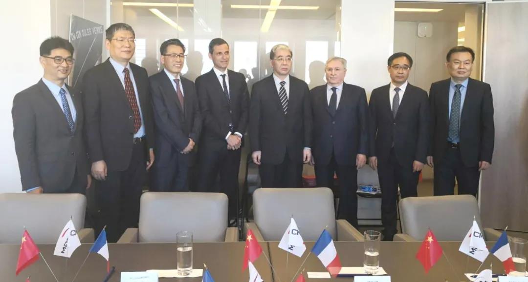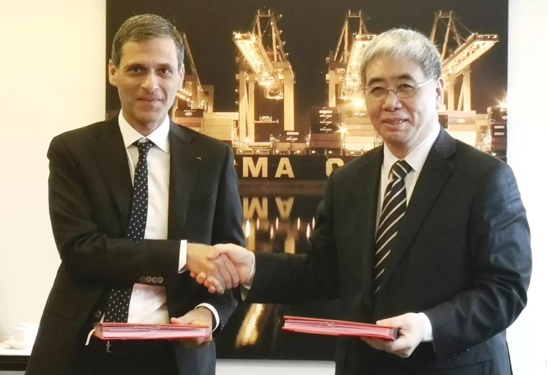 中國(guó)船舶集團(tuán)董事長(zhǎng)雷凡培、達(dá)飛集團(tuán)董事長(zhǎng)兼首席執(zhí)行官魯?shù)婪颉に_德互換簽約文本