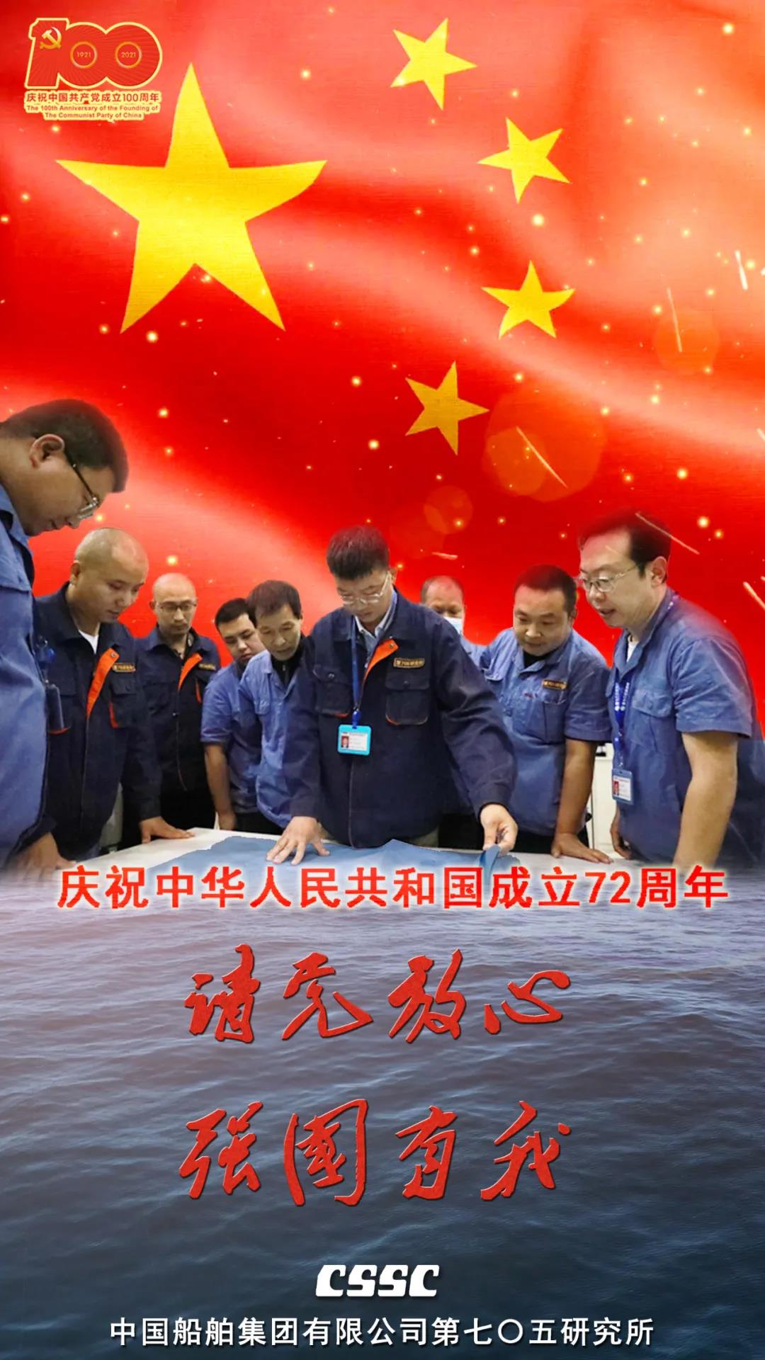 72年篳路藍(lán)縷,72年風(fēng)雨兼程,正值建黨百年之際,恰逢新中國(guó)72周年華誕,中國(guó)船舶七二六所為祖國(guó)獻(xiàn)上最真摯的祝福!祝福偉大祖國(guó)繁榮昌盛!七二六人將繼續(xù)用智慧和汗水譜寫(xiě)水聲華章,用創(chuàng)新和拼搏開(kāi)拓新時(shí)代新征程,為建設(shè)海洋強(qiáng)國(guó)貢獻(xiàn)磅礴力量!