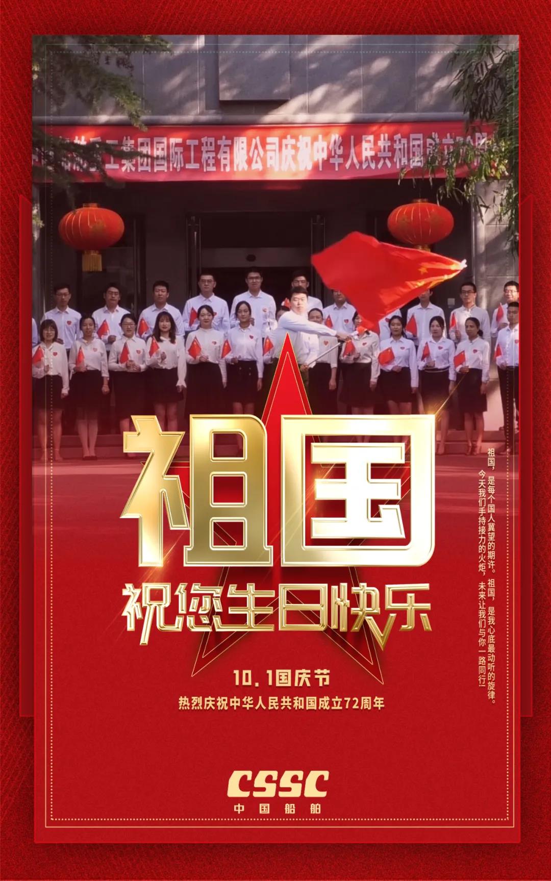 欣望江山千里秀,歡送祖國(guó)萬(wàn)年春,中國(guó)船舶七〇九所祝福新中國(guó)72歲生日快樂(lè),“中國(guó)號(hào)”巨輪劈波斬浪再創(chuàng)新輝煌!