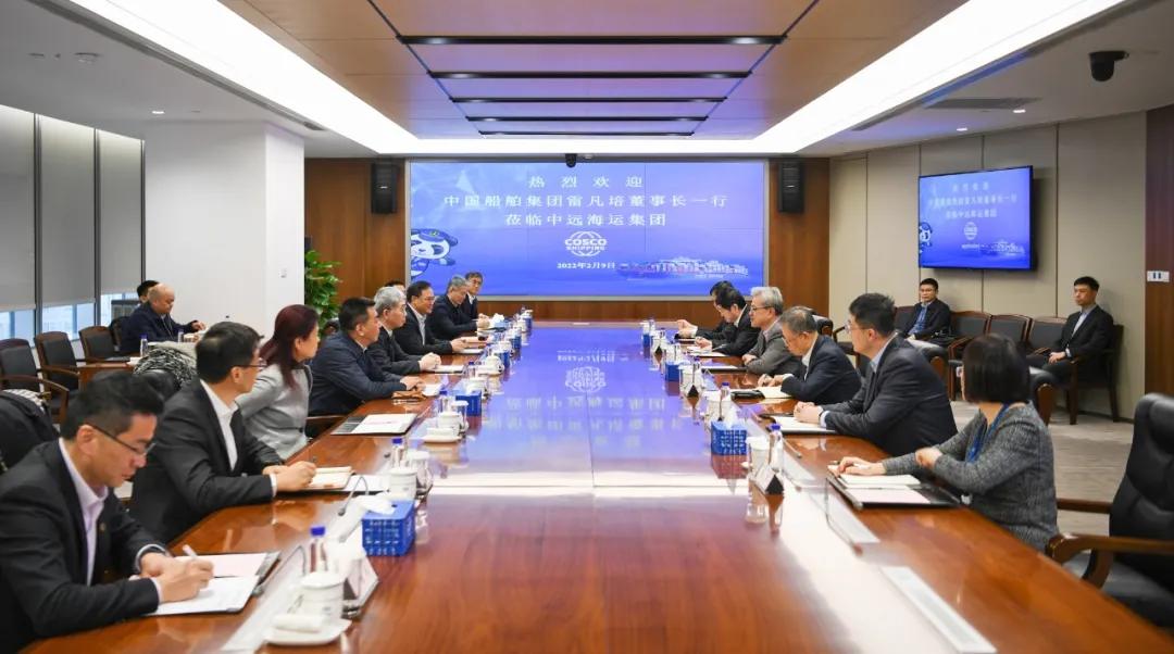2月9日,中國船舶集團有限公司黨組書記、董事長雷凡培,黨組副書記、總經(jīng)理楊金成一行赴中遠海運大廈拜會中國遠洋海運集團有限公司黨組書記、董事長萬敏,黨組副書記、總經(jīng)理付剛峰。雙方互賀壬寅虎年新春,圍繞深入貫徹落實國家重大戰(zhàn)略,就進一步加強綠色燃料技術(shù)研發(fā)應(yīng)用、船舶與航運業(yè)全產(chǎn)業(yè)鏈構(gòu)建等領(lǐng)域的交流合作,攜手推動我國航運業(yè)和造船業(yè)高質(zhì)量發(fā)展進行了深入探討并達成廣泛共識。中國船舶集團黨組成員、副總經(jīng)理孫偉、盛紀(jì)綱,中遠海運集團黨組成員、副總經(jīng)理、總會計師孫云飛參加會談。