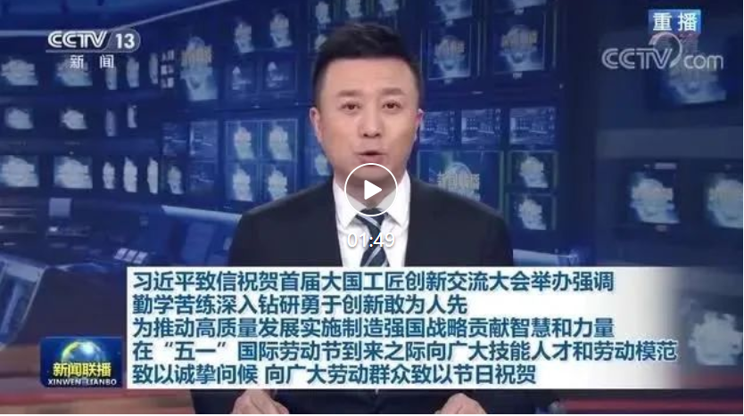 首屆大國工匠創(chuàng)新交流大會4月27日上午在京開幕。中共中央總書記、國家主席、中央軍委主席習近平發(fā)來賀信,向大會的舉辦表示熱烈的祝賀,并在“五一”國際勞動節(jié)到來之際,代表黨中央向廣大技能人才和勞動模范致以誠摯的問候,向廣大勞動群眾致以節(jié)日的祝賀。