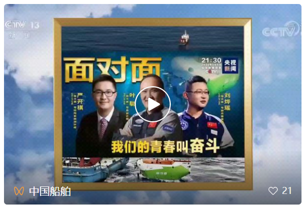 5月8日,央視《面對(duì)面》節(jié)目聚焦“奮斗者”號(hào)研發(fā)團(tuán)隊(duì)。