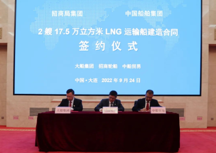 9月24日,中國(guó)船舶集團(tuán)旗下大船集團(tuán)聯(lián)合中船貿(mào)易為招商局集團(tuán)旗下招商輪船建造的30萬(wàn)噸VLCC “新伊敦”輪正式命名交付。同日,大船集團(tuán)聯(lián)合中船貿(mào)易成功承接了招商輪船2艘17.5萬(wàn)立方米大型LNG運(yùn)輸船新造項(xiàng)目。中國(guó)船舶集團(tuán)黨組副書記、總經(jīng)理?xiàng)罱鸪桑h組成員、副總經(jīng)理孫偉,招商局集團(tuán)黨委書記、董事長(zhǎng)繆建民,黨委副書記、總經(jīng)理胡建華,紀(jì)委書記、董事段湘暉,黨委委員、副總經(jīng)理李百安出席儀式。繆建民為新船命名,楊金成、胡建華在儀式上致辭,段湘暉為新船砍纜。