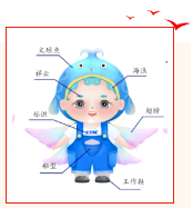 設(shè)計(jì)說明:該作品取自《山海經(jīng)》中飛魚——文瑤。相傳文瑤魚出自泰器山,此魚長(zhǎng)著魚的身體,鳥的翅膀,飛翔東天門與西天門之上,遨游在東海和西海之間。文瑤魚乃是吉祥如意的象征,相傳其所到之處風(fēng)調(diào)雨順、五谷豐登,船寶設(shè)計(jì)中加入云紋,如意紋,錢紋寓意中國(guó)造船業(yè),吉祥如意,鵬程萬里。海寶以Q版造型生動(dòng)展現(xiàn)了其活潑可愛、積極熱情服務(wù)大眾的美好形象,以文瑤魚的形式化身造船工匠,體現(xiàn)我們?cè)齑饲笳鎰?wù)實(shí)、攻堅(jiān)克難、開拓創(chuàng)新、拼搏奉獻(xiàn)的精神力量,積極營(yíng)造正能量。