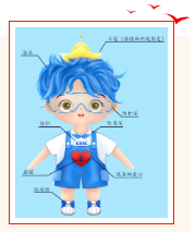 設(shè)計(jì)說明:圍繞“愛在深藍(lán)”志愿服務(wù)為主題設(shè)計(jì)了一名小男孩IP形象,深藍(lán)色的發(fā)色呼應(yīng)主題。紅色的帽子和三角巾突出志愿服務(wù)的形象與船舶青年熱血有愛志愿精神。雪白的T恤在胸口印有“愛在深藍(lán)”品牌LOGO,彰顯小男孩的身份與純潔進(jìn)步的“艦船報(bào)國(guó)、向海圖強(qiáng)”的船舶青年志向。可愛且色塊明顯的IP形象設(shè)計(jì),通過紅藍(lán)撞色使IP形象更具有吸引力。小男孩形象設(shè)計(jì)簡(jiǎn)潔,方便進(jìn)行后期表情包、日歷、書簽等2D周邊設(shè)計(jì),與3D實(shí)物生產(chǎn)。
