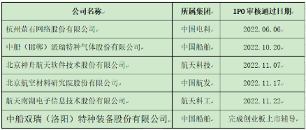 2022年的資本市場(chǎng),行情不熱行業(yè)熱。從已經(jīng)公開披露的信息看,2022年中央企業(yè)專精特新小巨人在科創(chuàng)板和創(chuàng)業(yè)板持續(xù)發(fā)力,目前已有中無人機(jī)(航空工業(yè))、國(guó)博電子(中國(guó)電科)、振華風(fēng)光(中國(guó)電子)、昆船智能等7家企業(yè)IPO上市。此外,截至2022年11月30日,已有多家央企專精特新企業(yè)IPO申請(qǐng)通過了科創(chuàng)板上市委審核和創(chuàng)業(yè)板上市輔導(dǎo),其中有兩家中國(guó)船舶集團(tuán)旗下企業(yè)(見下表)。這些企業(yè)將在2023年IPO上市,主要來自船舶、航空、航天和軍工電子行業(yè)。