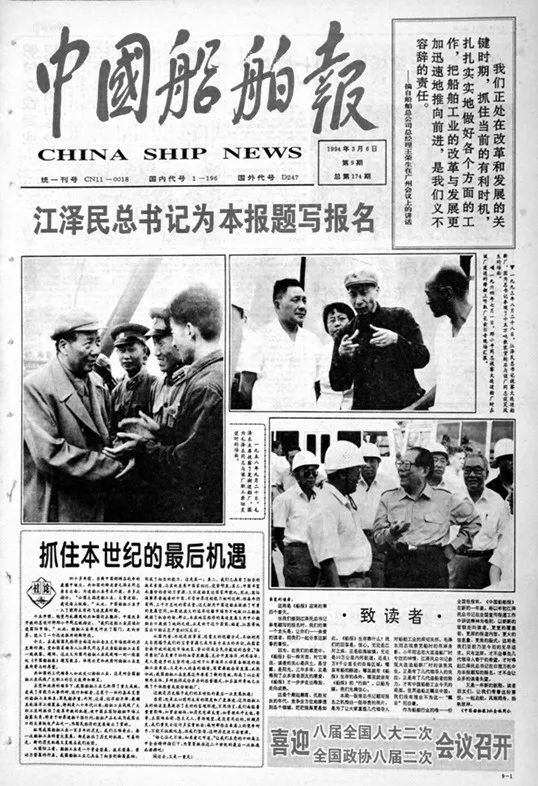 1994年3月6日,《中國(guó)船舶報(bào)》首次啟用江澤民同志親筆題寫(xiě)的報(bào)頭。