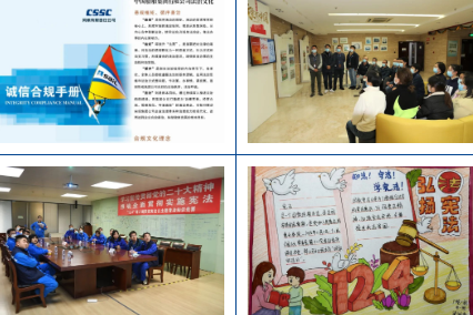 風(fēng)帆公司、綜合院等單位發(fā)布合規(guī)手冊,組織簽署合規(guī)承諾和合規(guī)考試;中船澄西、投資公司、七一一所、七二六所等單位精心制作并設(shè)置憲法宣傳展板;江南造船、中船九院等單位開展憲法法律知識問答,實(shí)現(xiàn)以考促學(xué);廣州公司持續(xù)開展“送法進(jìn)校園”憲法宣傳活動,將法治學(xué)習(xí)延伸到所屬技校、幼兒園;七一〇所、七一五所等單位開展法律咨詢志愿服務(wù)活動,對外樹立良好的“法治形象”;駐香港企業(yè)中船資本、中船租賃大力宣傳憲法及香港基本法、香港國安法,提升員工憲法法治意識。