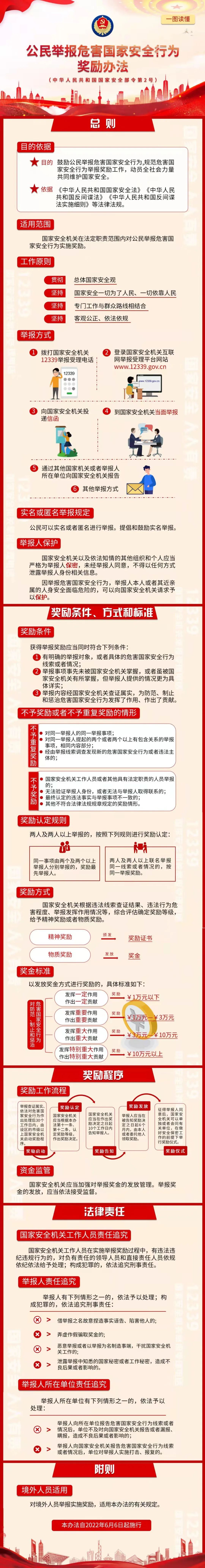 2022年6月6日,國家安全部公布部門規(guī)章《公民舉報危害國家安全行為獎勵辦法》。國家安全一切為了人民,一切依靠人民,讓我們行動起來,共做國家安全的守護人!