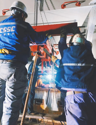 △ 船廠車間,機(jī)器轟鳴,焊花飛舞,武漢船機(jī)、大連造船、中船應(yīng)急、七一八所、七一一所、中船綠洲、重慶公司、中南裝備的同事在各自的崗位奮斗著。