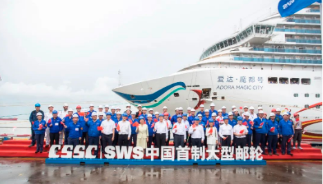 9月12日下午,中國首制大型郵輪“愛達(dá)·魔都號(hào)”經(jīng)過六天五夜1630海里的海上航行,穩(wěn)穩(wěn)靠泊于中國船舶集團(tuán)旗下外高橋造船4號(hào)碼頭。中國船舶集團(tuán)黨組書記、董事長(zhǎng)溫剛,黨組成員、副總經(jīng)理孫偉,紀(jì)檢監(jiān)察組組長(zhǎng)、黨組成員李佳穎到碼頭迎接。