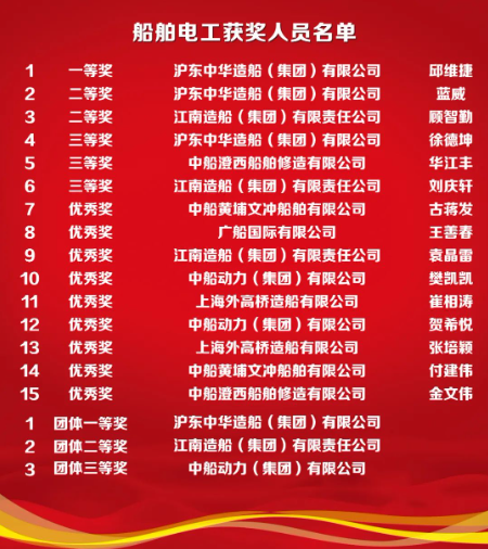 本次競賽項目既有船舶行業(yè)主體工種——船舶電工,又有現(xiàn)代制造業(yè)重要工種——加工中心操作調(diào)整工。競賽由滬東中華、707所承辦,上海公司協(xié)助負責保密監(jiān)督工作;競賽首次全部采用第三方裁判,進一步提升執(zhí)裁專業(yè)性和公正性。來自40家成員單位共計120名選手同臺角逐,最終評選出個人及團體一、二、三等獎和個人優(yōu)秀獎,優(yōu)秀組織獎等獎項。參賽選手們相互學習交流、深入切磋技藝,展現(xiàn)了中國船舶技能人才頑強拼搏、追求卓越的良好精神面貌。