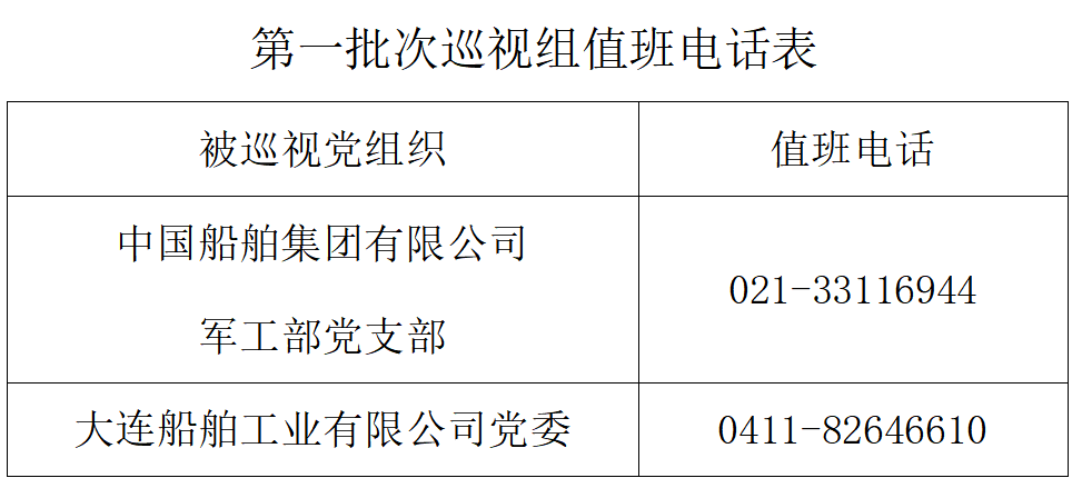 巡視期間,集團(tuán)公司黨組巡視組設(shè)置值班電話和聯(lián)系信箱,主要受理反映被巡視黨組織領(lǐng)導(dǎo)班子及其成員、下一級黨組織領(lǐng)導(dǎo)班子主要負(fù)責(zé)人和重點崗位領(lǐng)導(dǎo)干部問題的來信、來電、來訪,重點關(guān)注違反政治紀(jì)律、組織紀(jì)律、廉潔紀(jì)律、群眾紀(jì)律、工作紀(jì)律、生活紀(jì)律以及巡視整改等方面問題反映。第一批次巡視受理信訪截止時間為4月16日。