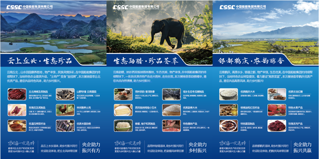百家央企聚合力,消費(fèi)幫扶促振興。中船集團(tuán)積極響應(yīng)國(guó)家號(hào)召,自2018年起持續(xù)對(duì)云南鶴慶、丘北、勐臘三縣開展消費(fèi)幫扶,通過“以購代扶、以銷促產(chǎn)”的有效路徑,走出了鄉(xiāng)村振興的堅(jiān)實(shí)步伐。同時(shí),中船集團(tuán)以“中船集團(tuán)電子商城”“中船·惠民優(yōu)選”線上平臺(tái)為依托,充分挖掘并推廣三個(gè)幫扶縣特色農(nóng)產(chǎn)品資源,系統(tǒng)推進(jìn)消費(fèi)幫扶工作落地落實(shí)。