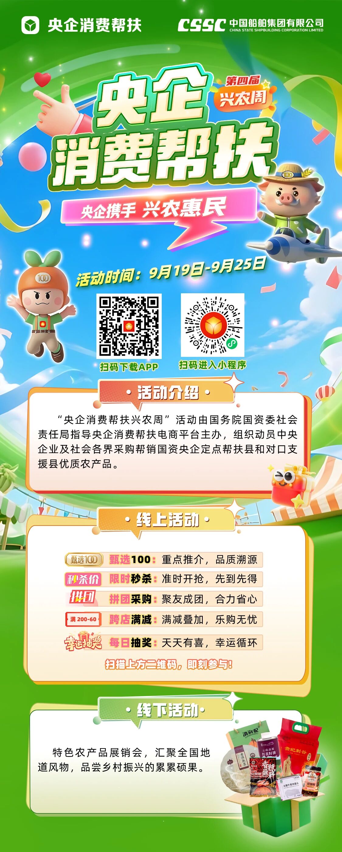 9月19日,以“央企攜手,興農(nóng)惠民”為主題的第四屆“央企消費(fèi)幫扶興農(nóng)周”活動(dòng)在北京正式啟動(dòng)。中國(guó)船舶集團(tuán)有限公司在同期舉行的特色農(nóng)產(chǎn)品展銷會(huì)上精心布置了特色展區(qū),現(xiàn)場(chǎng)展銷來自其定點(diǎn)幫扶的鶴慶、勐臘、丘北三縣的110款優(yōu)質(zhì)特色農(nóng)產(chǎn)品。