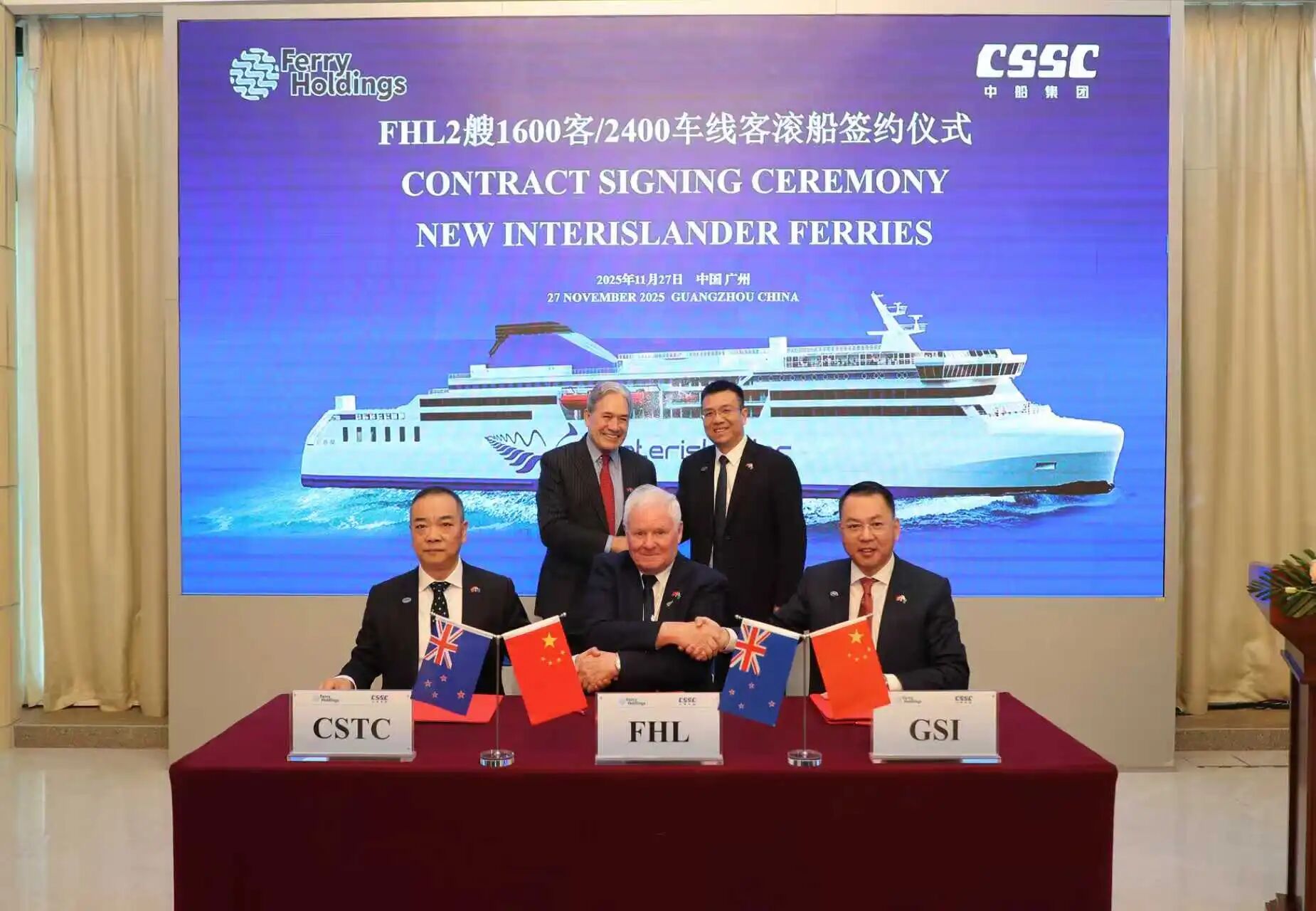 11月27日,中國船舶集團有限公司旗下廣船國際有限公司攜手新西蘭FHL(Ferry Holdings)公司簽署2艘新型客滾船建造合同。當天簽約的客滾船項目,是連接中新兩國友誼的重要紐帶。在中船集團與FHL公司攜手推動下,雙方共贏合作邁出了關(guān)鍵一步。