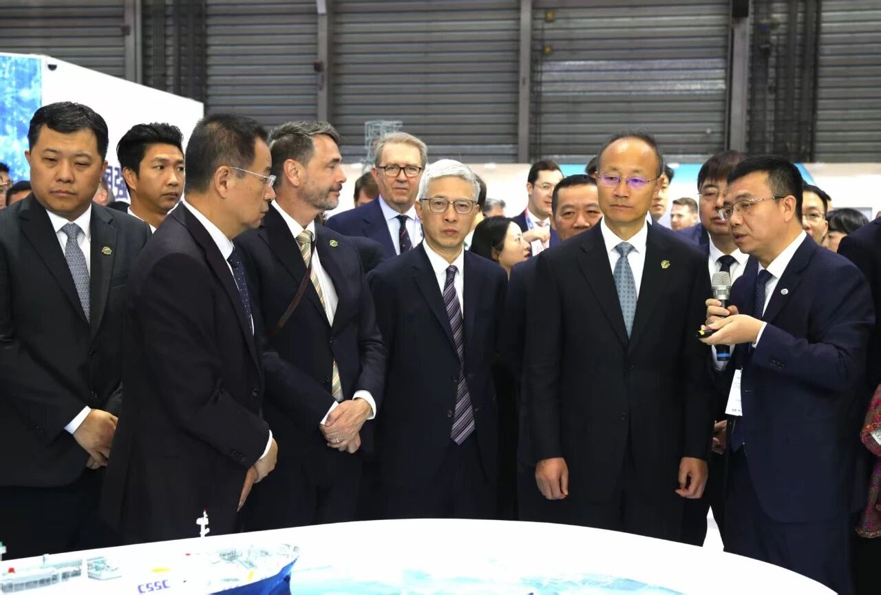 中國(guó)國(guó)際海事會(huì)展被譽(yù)為全球海事業(yè)的“風(fēng)向標(biāo)”,也是全球最具影響力和規(guī)模最大的海事專業(yè)會(huì)展。本次會(huì)展,中船集團(tuán)展臺(tái)面積達(dá)4000平方米,以“向海圖強(qiáng) 智領(lǐng)深藍(lán)”為主題,聚焦“高端、綠色、智能、深海、極地、生態(tài)”主線,分設(shè)高端產(chǎn)品、綠色能源、智能技術(shù)、深海開(kāi)發(fā)、極地探索、生態(tài)融合等六大展區(qū),集中展示中船集團(tuán)品牌形象,呈現(xiàn)高端產(chǎn)品、卓越技術(shù)和生態(tài)服務(wù)。其中,“夢(mèng)想”號(hào)大洋鉆探船、國(guó)產(chǎn)大型郵輪“愛(ài)達(dá)·花城號(hào)”、27.1萬(wàn)立方米LNG船、核動(dòng)力集裝箱船等旗艦產(chǎn)品,32.5萬(wàn)噸甲醇雙燃料礦砂船等綠色船型以及WinGD10X92DF-M-1.0甲醇雙燃料主機(jī)、BrilliancE B型燃料艙、船舶碳捕集裝置等低碳零碳轉(zhuǎn)型重要裝備,“珠海云”號(hào)智能無(wú)人科考母船、“未來(lái)”號(hào)深遠(yuǎn)海綠色智能技術(shù)試驗(yàn)船等智能船舶平臺(tái),“奮斗者”號(hào)等系列載人潛水器、“深海一號(hào)”等尖端探索裝備、深水鉆井平臺(tái)等深海開(kāi)發(fā)裝備以及15萬(wàn)噸智慧漁業(yè)養(yǎng)殖工船等深海裝備,“雪龍2”號(hào)極地科考破冰船、“極地”號(hào)破冰調(diào)查船等極地裝備等一系列代表中船集團(tuán)最高水平和最先進(jìn)研發(fā)能力的產(chǎn)品裝備和技術(shù)紛紛亮相,聚焦現(xiàn)代海事服務(wù)體系建設(shè)的生態(tài)融合區(qū)集中展示中船集團(tuán)在供應(yīng)鏈、貿(mào)易、服務(wù)等領(lǐng)域的開(kāi)放合作競(jìng)爭(zhēng)優(yōu)勢(shì)。